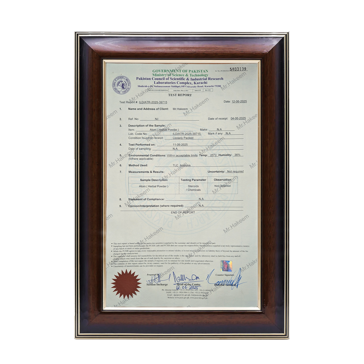 Mr. Hakeem – Tested under PCSIR standards.